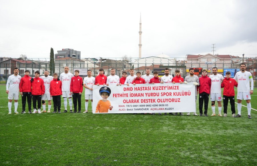 Maç öncesi seremonide DMD hastası olan Kuzey için yardım pankartıyla sahaya çıkan Fethiye İdman Yurdu, tribünlerden büyük alkış topladı.