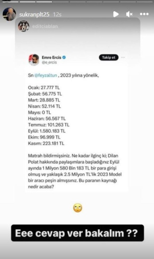Gazeteci Emre Erciş, Feyza Altun'u etiketleyerek "Avukatlık dışında başka bir geliriniz yok. Kirada eviniz vs gibi" diyerek şunları yazdı:
