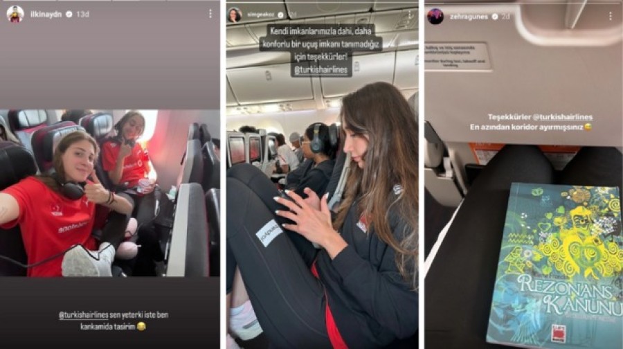 Karakurt'un yanında oturan takım kaptanı Eda Erdem ise paylaşımında yine THY'yi etiketleyerek, "Fotoğraftaki takım arkadaşlarımızı bulunuz" dedi.