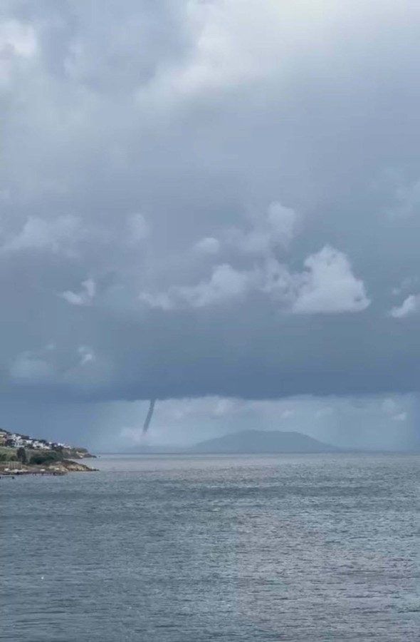 Kentte aralıklarla yağmur sürerken, Foça'nın Yenifoça Mahallesi açıklarında bu sabah hortum oluştuğu gözlendi.