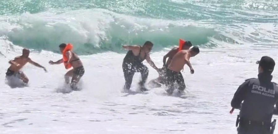 Sunduvaç, dev dalgalardan dolayı gençle birlikte suda ekiplerin yardımını bekledi. İhbarla birlikte olay yerine gelen deniz polisi ekipleri, kıyıya 100 metre açıktaki genç ve dalış eğitmenin yanına Uzaktan kumandalı insansız cankurtaran robotu yolladı.