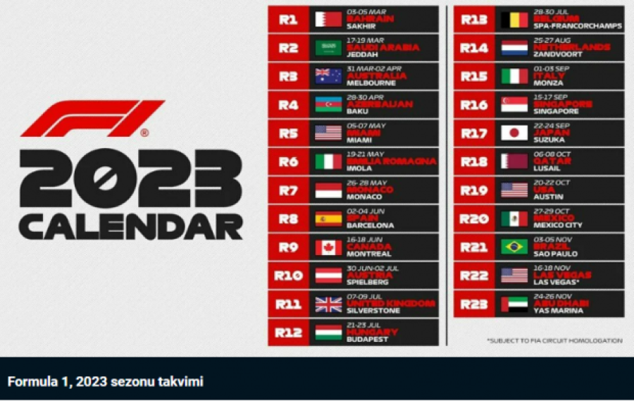 Formula 1 tarafından yapılan açıklamada 2023 sezonunun takvimi ilan edildi.