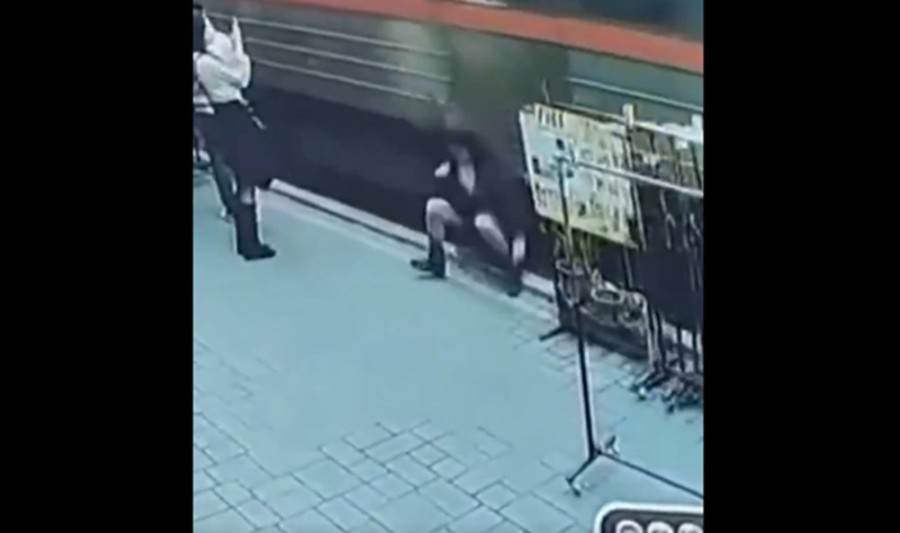 Yakındaki bir mağazadan alınan kamera görüntülerinde, kadının bir fotoğraf için poz vermek üzere kollarını uzattığı ve bir trenin koluna çarptığı görülüyor. Çarpma sonucu yere düşüyor ve neredeyse trenin altına yuvarlanıyor.
