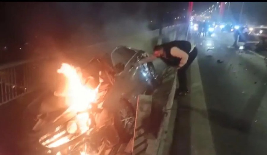 Kazada ilk belirlemelere göre 4 kişi yaralandı. Takla atan bir otomobilde yangın çıktı. Yanan otomobile çevredeki sürücüler ve polis ekipleri yangın tüpleriyle müdahale etti.