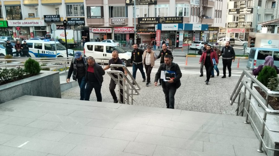 Emniyet Müdürlüğü'nde işlemleri tamamlanan 8 şüpheli adliyeye sevk edildi.