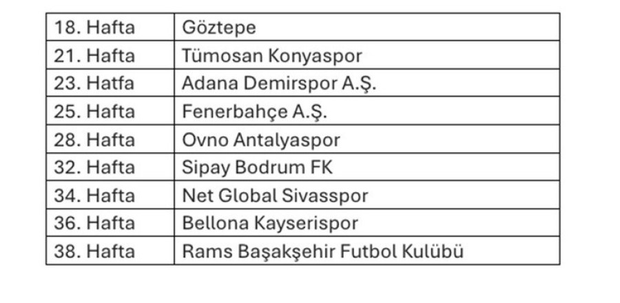 Galatasaray'ın Süper Lig'de kalan iç saha maçları ise şöyle;