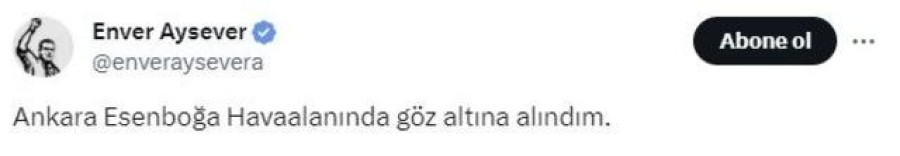 Gazeteci Enver Aysever sosyal medya hesabından yaptığı paylaşımda, Ankara Esenboğa Havaalanı'nda gözaltına alındığını yazdı.
