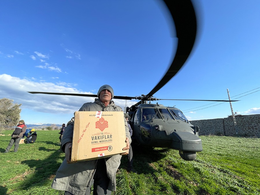 Gaziantep'te deprem çalışmalarının koordinasyonunu yürüten Çevre, Şehircilik ve İklim Değişikliği Bakanlığınca organize edilen yardım malzemelerinin kırsal mahallelere gönderilmesi için çalışma başlatıldı. Bu kapsamda 5. Zırhlı Tugay Komutanlığında toplanan yardımlar, askerler tarafından askeri helikopterlere taşındı.