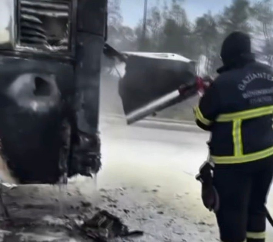 Gaziantep'in Nurdağı ilçesinde yolcu otobüsünün motor kısmında çıkan yangın itfaiye ekipleri tarafından söndürüldü. Yangından hemen önce yolcuların tahliye edilmesi faciayı önledi.