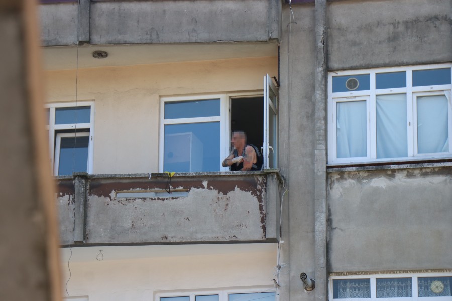 Yarı çıplak şekilde balkona çıkan şüpheli, elindeki silahla tehditler savurdu. İhbar üzerine olay yerine itfaiye, sağlık ve çok sayıda polis ekipleri sevk edildi.