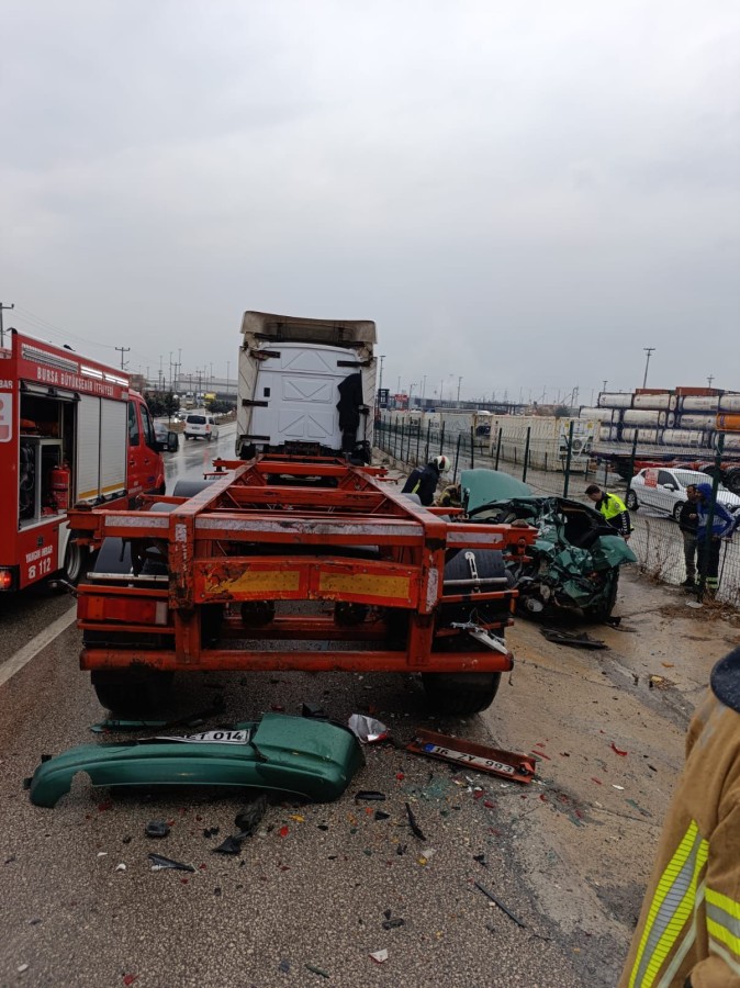 Edinilen bilgiye göre, Serdal B. (30) idaresindeki 16 AET 014 plakalı otomobil, henüz bilinmeyen bir nedenle kontrolden çıkarak yol kenarında park halinde bulunan tır ile elektrik trafosuna çarptı.