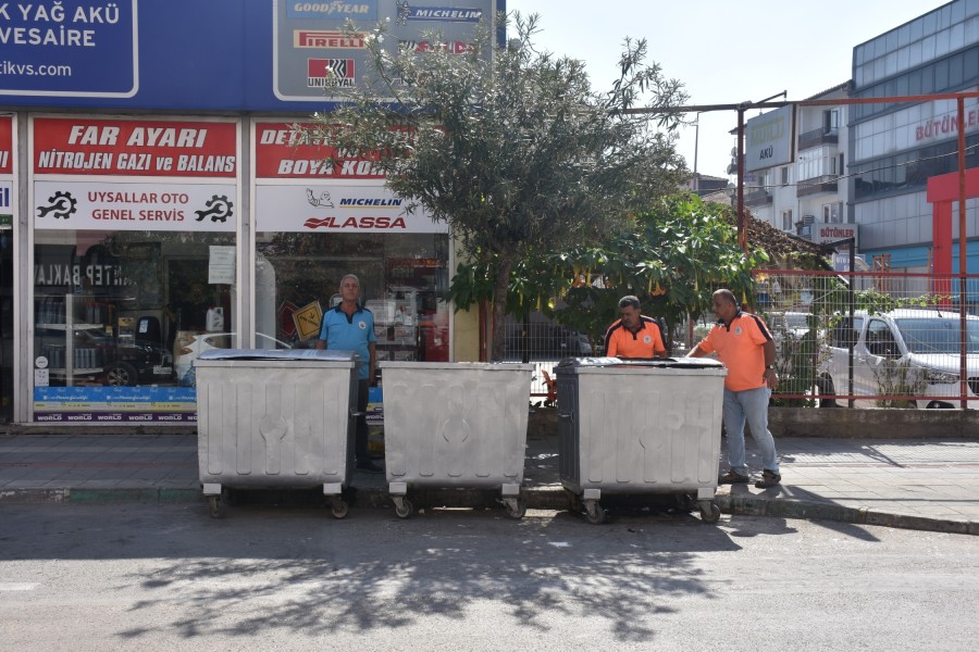 Öte yandan Gemlik Belediyesi ekipleri, ilçenin çeşitli noktalarındaki çöp konteynerlerine bakım yapıyor.