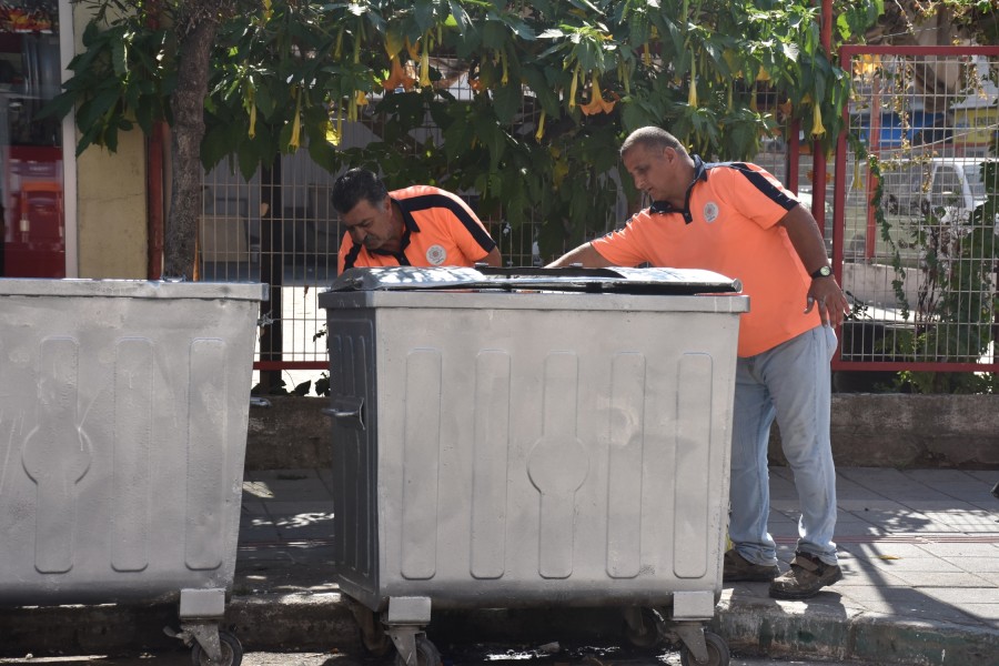 İçinde ve çevresindeki kalıcı atıkların temizlendiği konteynerler, boyanarak yenileniyor. İlerleyen günlerde ana caddeler başta olmak üzere ilçedeki tüm konteynerler temizlenip boyanacak.