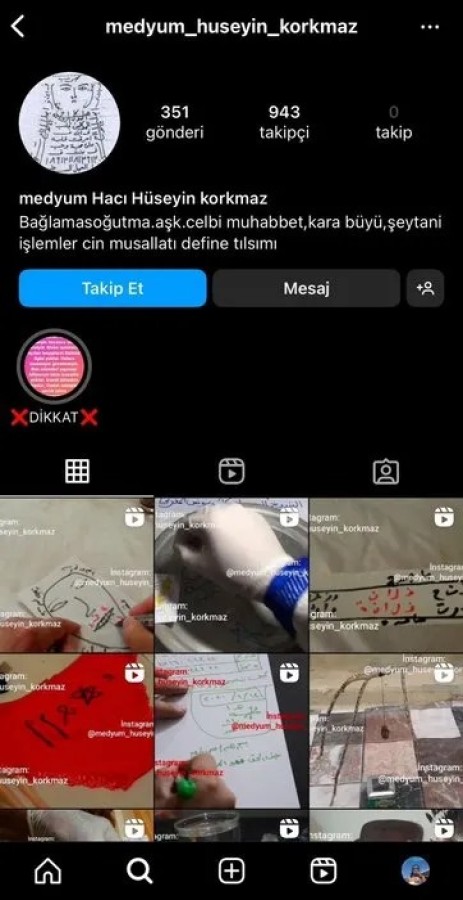 Sabah'ın haberine göre, Sosyal medyadaki medyum dolandırıcılığı pes dedirtti. İddiaya göre Adile D.(31), Aralık 2023'te Instagram'da "medyumhüseyinkorkmaz" isimli hesapta fal baktırma ilanı gördü. İlanın ilgisini çekmesi üzerine genç kadın, başına geleceklerden habersiz fal baktırmak için ilanda yazan numarayı aradı.