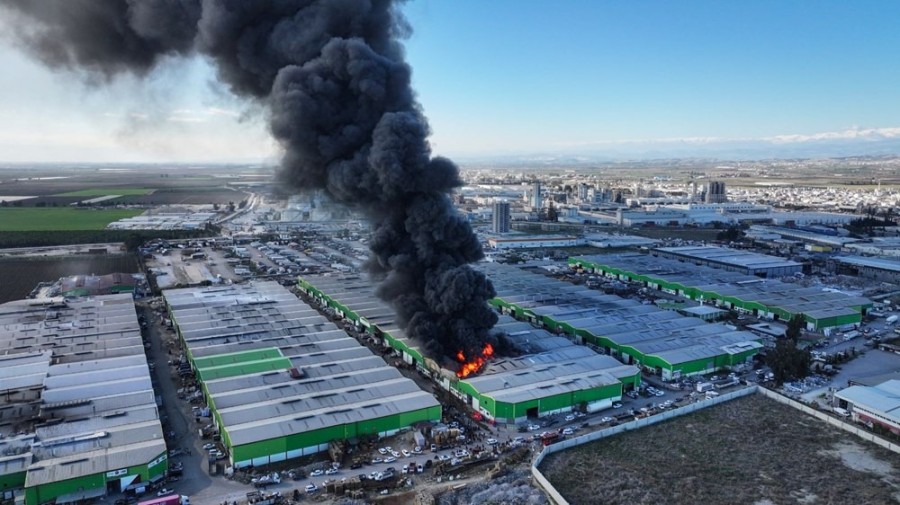 Adana'nın Seyhan ilçesinde yer alan plastik geri dönüşüm tesisinde yangın çıktı. Yangın nedeniyle oluşan kara dumanlar, gökyüzünü kapladı. Ekipler yangına müdahale ediyor.