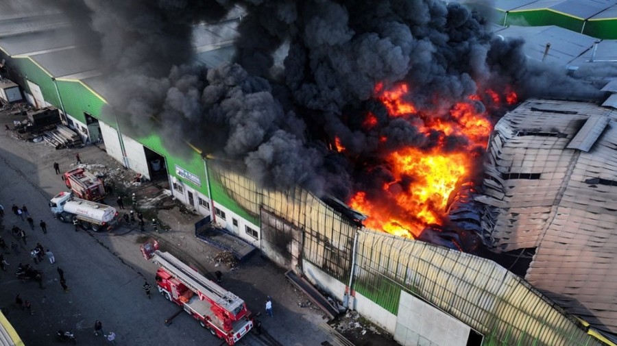 Kemal Deniz Geri Dönüşümcüler Sitesi'ndeki plastik geri dönüşüm tesisinde henüz belirlenemeyen nedenle yangın çıktı.