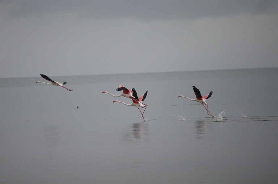 Flamingolar, verdikleri molanın ardından göç yolculuklarına devam etti.