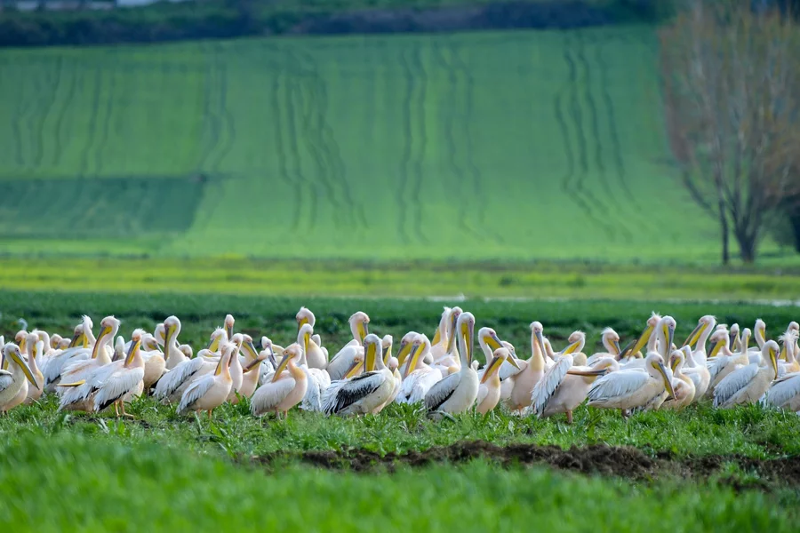 Bahar mevsiminin gelişiyle birlikte göç yolculuğuna çıkan pelikan sürüleri, her yıl olduğu gibi bu yıl da barajda mola veriyor.