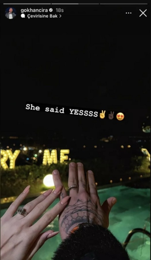 Çıra'dan beklenen fotoğraf geçen haftalarda geldi. Sosyal medya hesabında paylaşım yapan Çıra, "Evet dedi" notu ile evleneceğini duyurdu.
