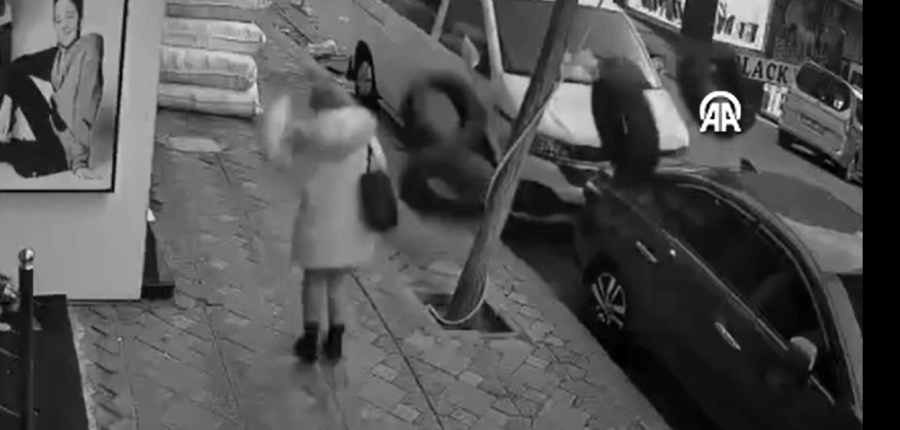 İstanbul Zeytinburnu'nda bir binanın 1'inci katındaki balkondan düşen araç lastikleri ile o sırada kaldırımda yürüyen kadının yaralanmaktan son anda kurtulması güvenli kamerasınca kaydedildi.