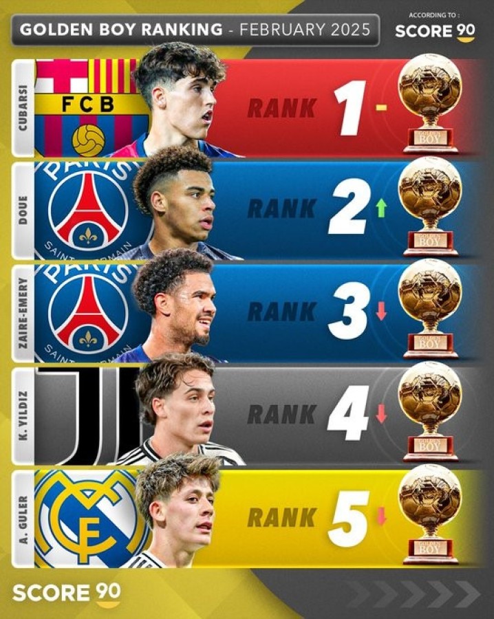 Şubat 2025 itibariyle son durum belli oldu. İlk sırada Barcelona'dan Pau Cubarsi yer aldı.