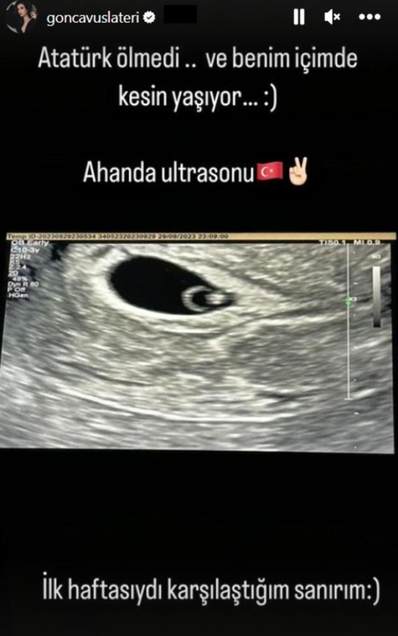 Fetüsün ay yıldız şeklinde görünmesi dikkatlerden kaçmadı. Vuslateri, paylaşımına "Atatürk ölmedi ve benim içimde kesin yaşıyor. Ahanda ultrasonu... İlk haftasıydı karşılaştığım sanırım" notunu düştü.
