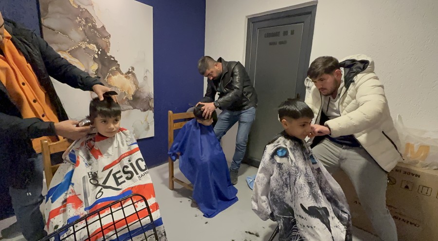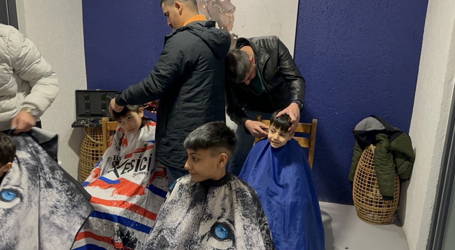 Otellere gelen berberler ve kuaförler çocukların saçlarını kesti. Bazı kız çocuklarının saçlarını da özenle ördü. O anlarda mutlu olan çocuklar berberlere teşekkürlerini iletti.