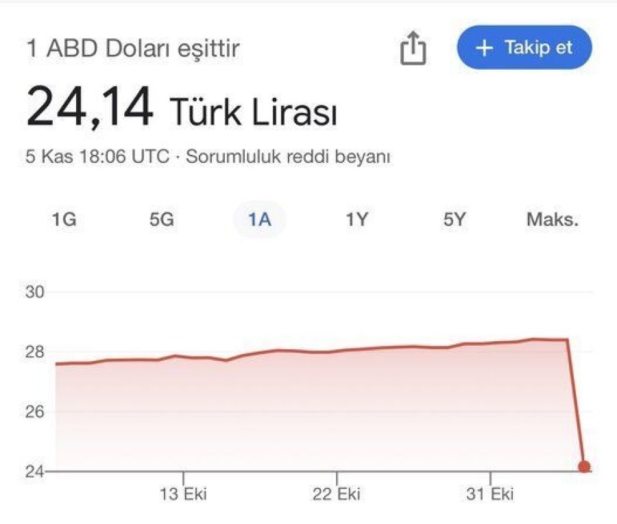 Google'a göre 1 dolar şu anda 24 TL'ye düşmüş gözüküyor.