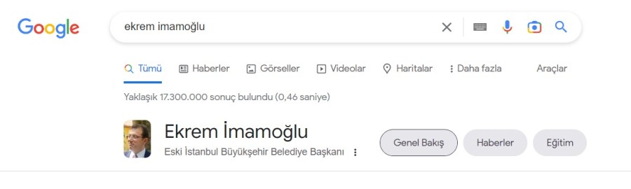 Dünyaca ünlü arama motoru Google, İstanbul Büyükşehir Belediye Başkanı Ekrem İmamoğlu için 'eski başkan' ibaresini kullandı.