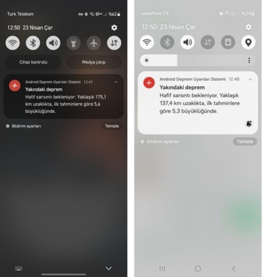 İstanbul Silivri açıklarında meydana gelen 6.2 büyüklüğündeki deprem, sadece İstanbul'da değil, Marmara Bölgesi'nin birçok noktasında hissedildi. Büyük panik yaşanırken, Android telefon kullanıcılarının bir kısmına, sarsıntıdan saniyeler önce gelen uyarı bildirimleri dikkat çekti.