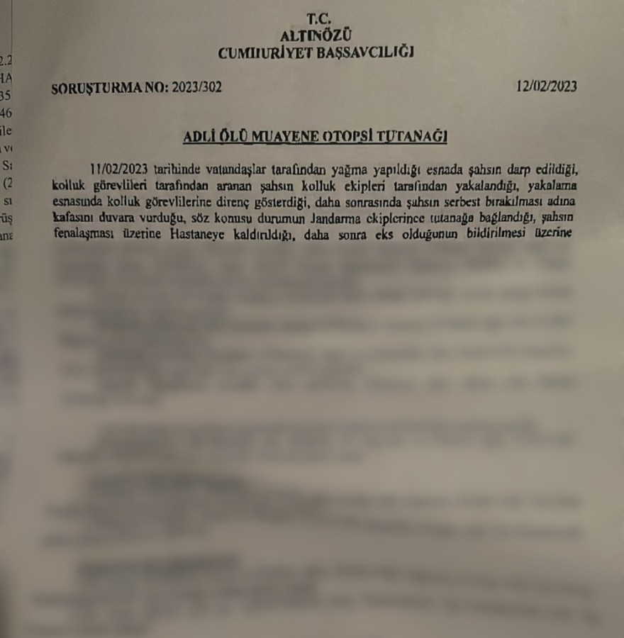 Tutanakta, "Ahmet Güreşçi'nin yağma sırasında vatandaşlar tarafından darp edildiği, yakalandığı sırada jandarmaya direndiği ve karakola götürüldüğünde kafasını duvara vurduğu" ileri sürüldü.