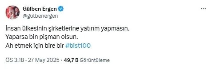 Ergen'in paylaşımında borsada yaşadığı hayal kırıklığını ifade ettiği görüldü.