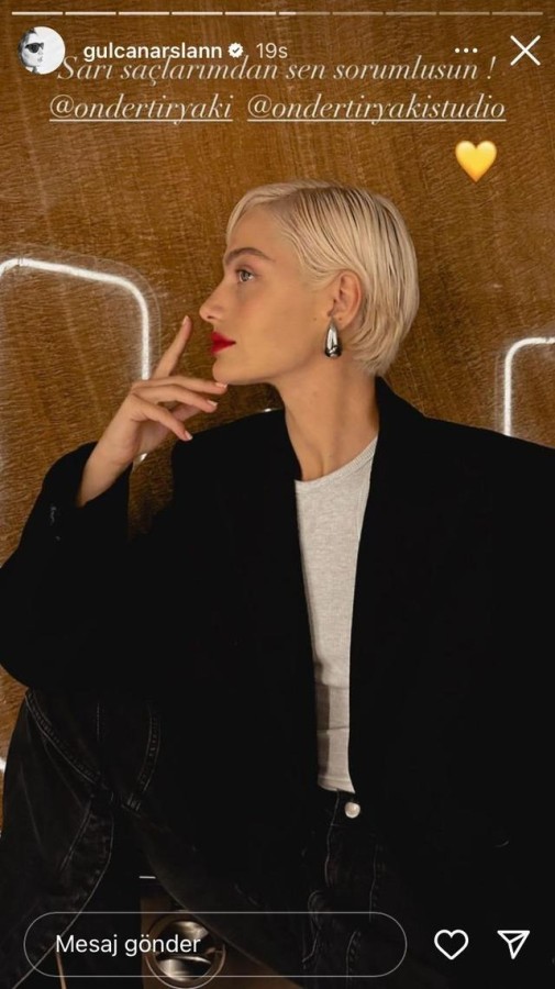 Uzun saçlarını kısacık kestiren Gülcan Arslan sarıya boyattı.