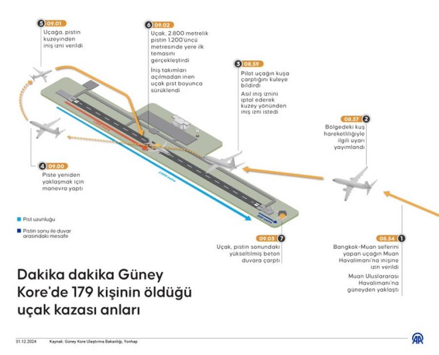 Güney Kore'de, dün 179 yolcunun ölümüyle sonuçlanan uçak kazasının son dakikalarında nelerin yaşandığı ortaya çıkıyor.