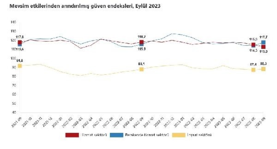TÜİK, Eylül 2023 dönemine ilişkin hizmet, perakende ticaret ve inşaat sektörleri güven endeksi verilerini açıkladı.