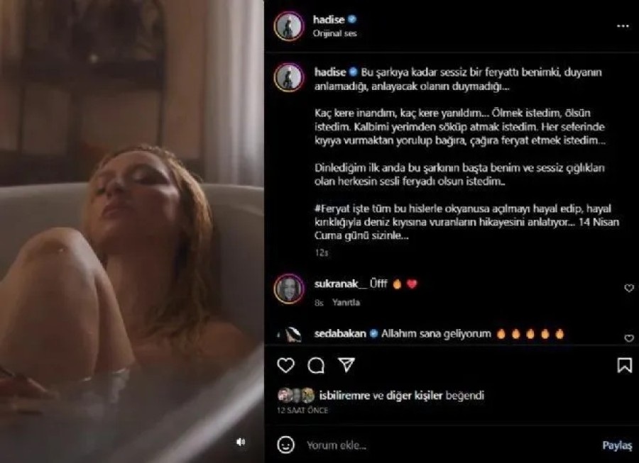 14,4 milyon takipçisinin bulunduğu Instagram hesabından yeni şarkısının tanıtımını yayınlayan Hadise, şunları aktardı: