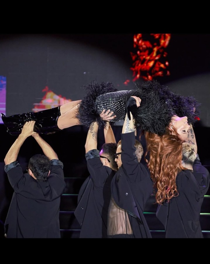 Konserinde kısa ve gösterişli bir elbise tercih eden Hadise, yine gösterişli çizmelerle kombinini tamamladı. Yeni saç rengiyle hayranlarının karşısına çıkan şarkıcı, merdivenlerin üzerine yatarak dans etti. O anlar sosyal medyada kısa sürede gündem oldu.