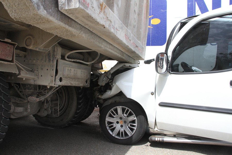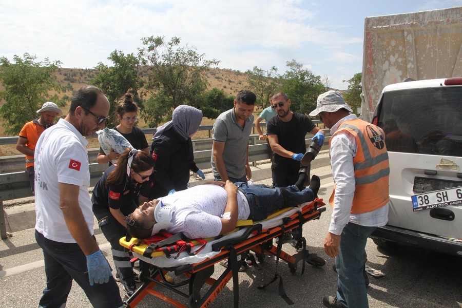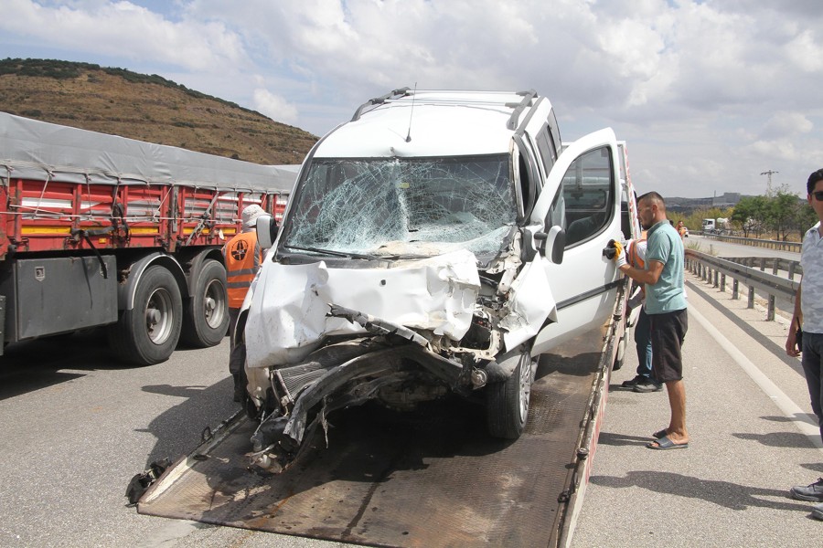 Uşak'tan İzmir yönüne giden Gökhan Mermer (35) yönetimindeki 38 SH 648 plakalı hafif ticari araç, aynı yöne seyreden Mehmet Demir (24) yönetimindeki 06 GA 5161 plakalı hafriyat kamyonuna arkadan çarptı.