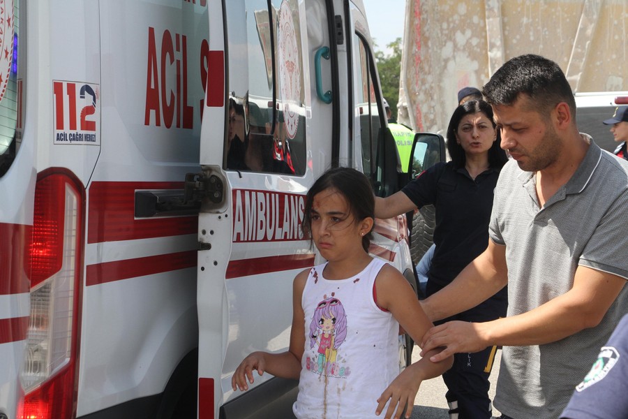 Manisa'nın Kula ilçesinde hafriyat kamyonuna arkadan çarptı. Hafif ticari araçtaki 4'ü çocuk, 7 kişi yaralandı.
