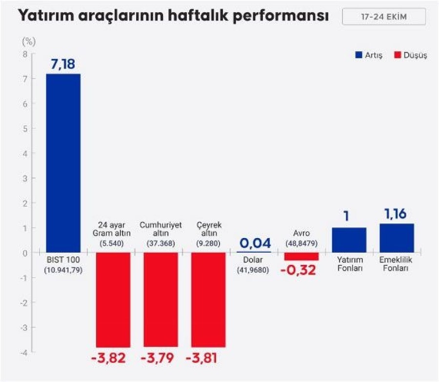 Altın yatırımcısı bu hafta büyük şaşkınlık yaşarken, Borsa ise yatırımcısını güldürdü. Dolar, euro, fonlar... Peki en çok kazandıran yatırım araçları hangileri oldu?