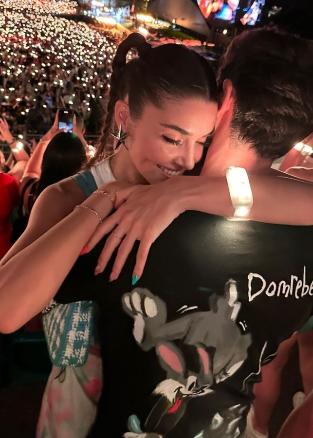 Coldplay konserine giden ikiliden Hande Erçel, sevgilisi Hakan Sabancı'ya sarıldığı kareyi takipçilerinin beğenisine sunmuştu.