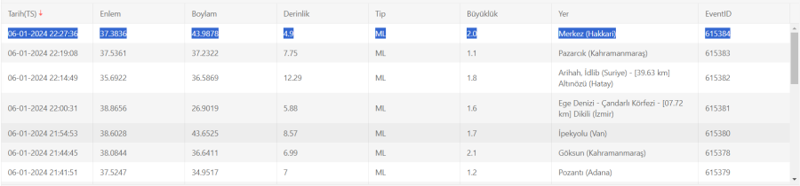 Hakkari'nin Yüksekova ilçesine 2.0 büyüklüğündeki deprem meydana geldi.