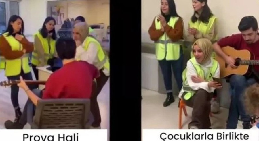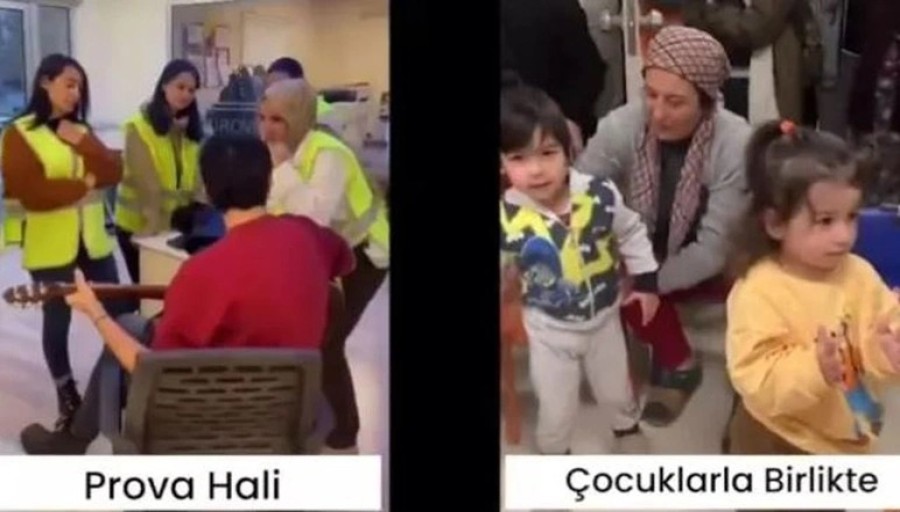 Depremzede çocukları biraz olsun mutlu etmek için prova yapıyorlardı oysa.