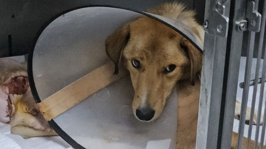 Arka kısmındaki felç geçmeyen köpeğin sağ arka bacağı ve kuyruğu kesildi.