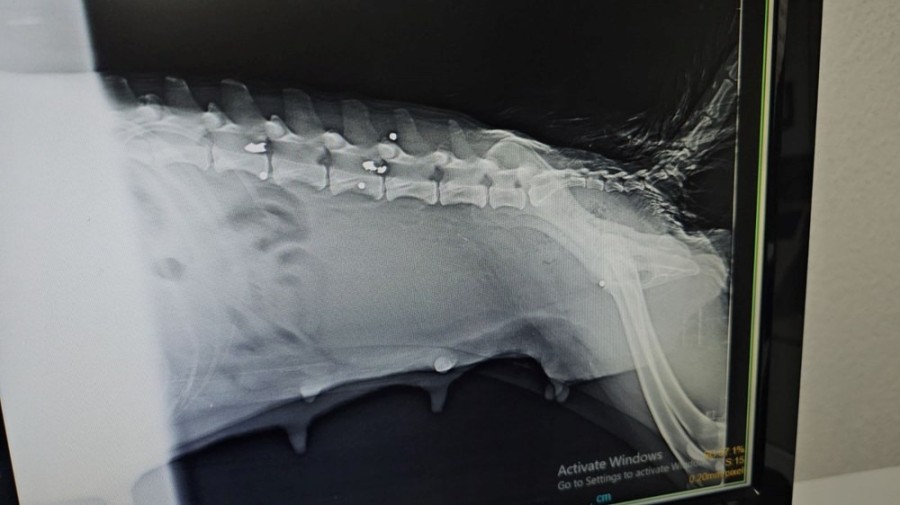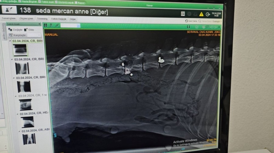 Köpeğin yaralı, yavruların yeni doğmuş olarak geldiğini ifade eden Veteriner Hekim Ömer Faruk Alkan, "Röntgeni çekip muayene yaptıktan sonra yakın mesafeden ateş edildiğini, saçmaların omuriliğin içine ve vücuduna saplandığını gördük. Omuriliktekini arka tarafı felç kalacağı için saçmayı bulup çıkarttık. Omuriliğin etrafındaki kemik dokusunu serbestleştirerek oradaki sinirin baskısından kurtardık. Sonra yavrularının yanına koyduk." dedi.