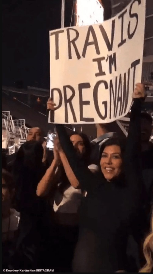 Kardashian, tüm bunların ardından geçtiğimiz hafta eşine bir sürpriz yaparak, hamile olduğunu açıklamıştı. Reality şov yıldızı, Barker Blink-182 konserinde sahneye çıktığında; "Travis, hamileyim" yazılı bir pankart açmıştı.