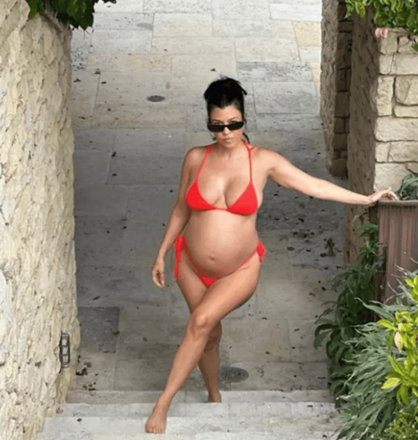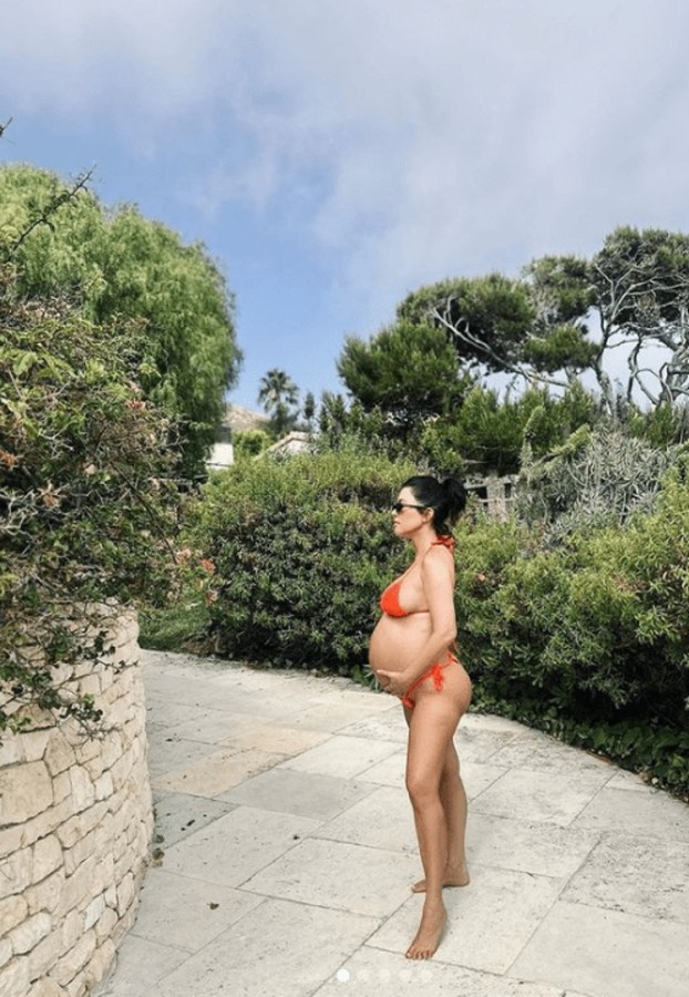 Erkek çocuk bekleyen ikiliden Kardashian, son olarak 224 milyon takipçisi bulunan sosyal medya hesabından yeni karelerini paylaştı.