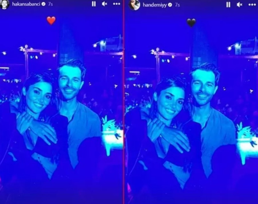 Ünlü çift, geçtiğimiz hafta ise aşka gelerek romantik bir pozlarını sosyal medya hesaplarından paylaşmıştı. Erçel, sevgilisinin kolunu boynuna doladığı bir fotoğrafı 30.9 milyon takipçisi bulunan Instagram sayfasının hikayeler bölümünden siyah kalp emojisi ile yayınlarken; Sabancı ise aynı kareyi kırmızı kalp emojisiyle paylaşmıştı.