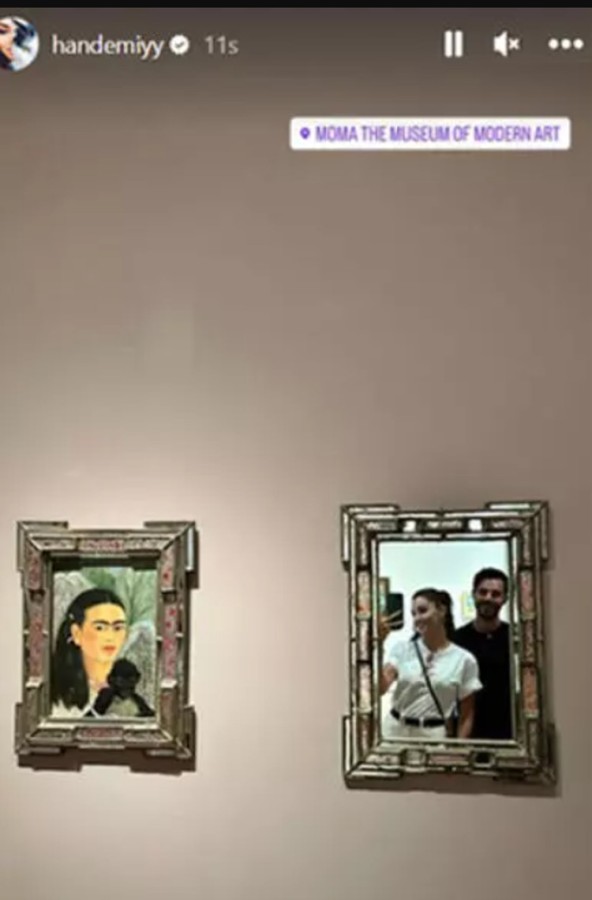 New York'ta gittikleri bir müzede aynadan hatıra fotoğrafı çeken çiftten Erçel, o kareyi sosyal medya hesabının hikayeler bölümünden paylaştı.