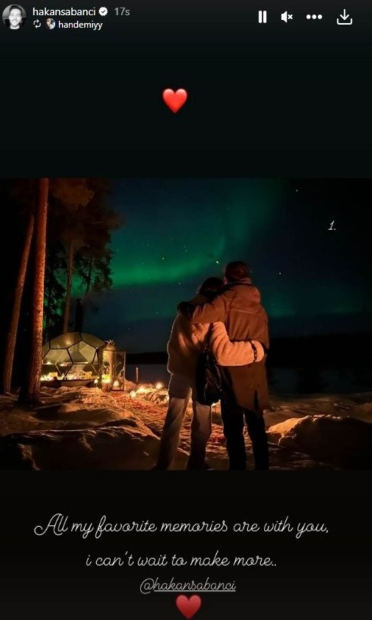 Özel hayatını gözlerden uzak yaşamayı tercih eden Hakan Sabancı ise sadece Erçel'in paylaşımını kendi hesabında yayınlayarak kırmızı kalp emojisi ekledi.